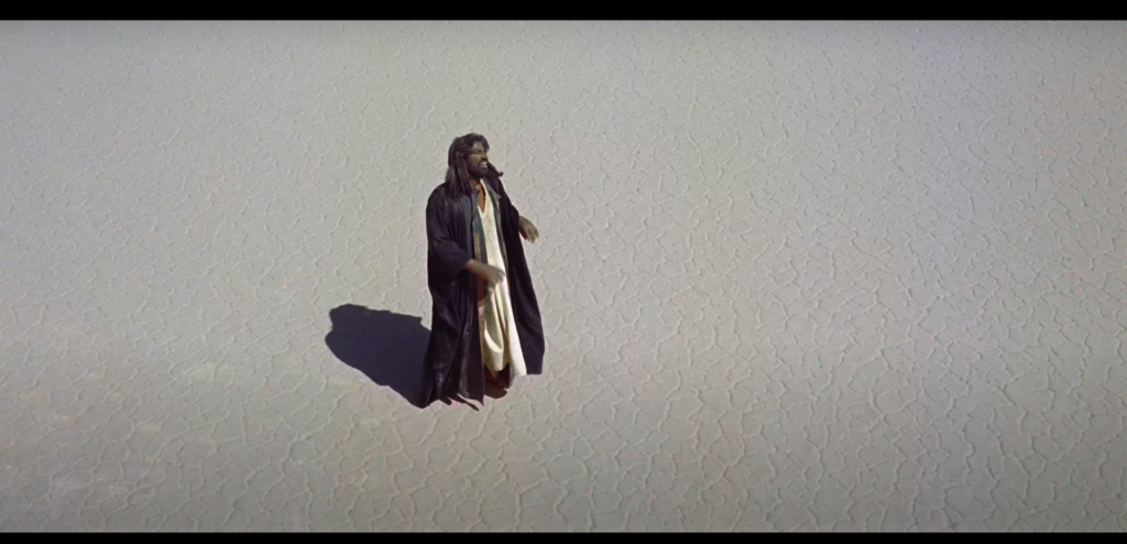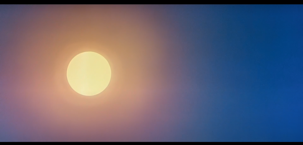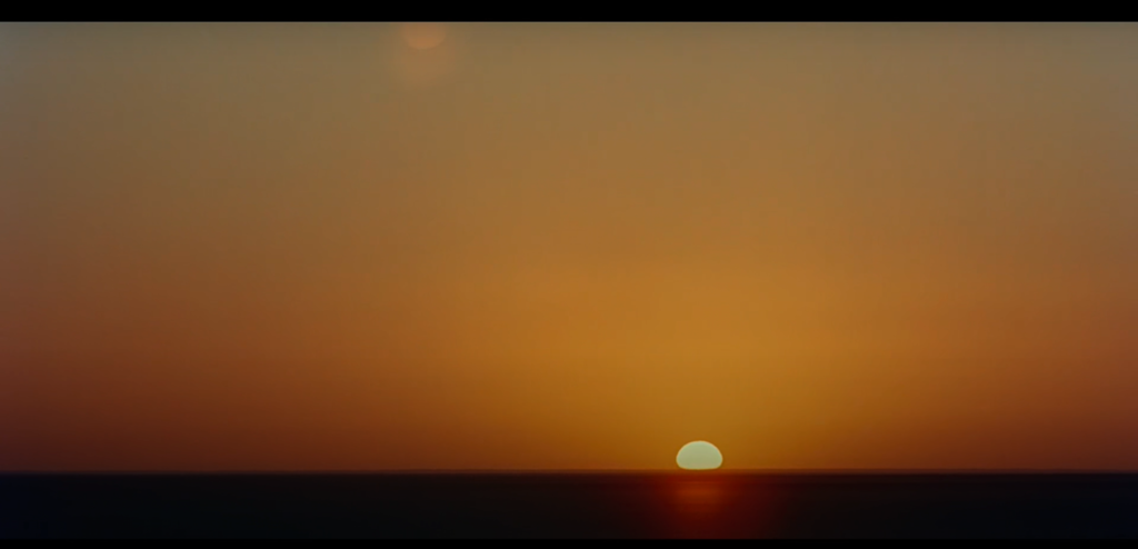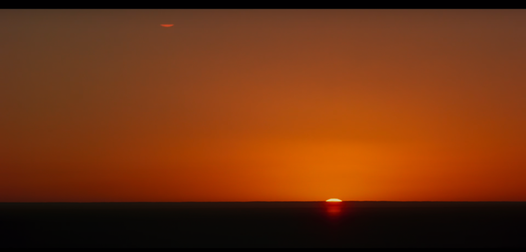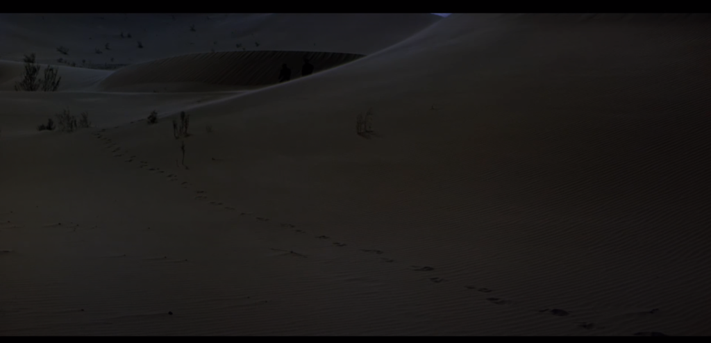 The imagery strikes me with a hard blow, and it dawns upon me much like the rising sun on screen; the content, sorry cinema, was originally made for 70mm theatre. Each frame stands out with its enchanting desert landscapes and dark hills. You can almost feel the isolation and blazing heat of the scene playing out on the screen. Well almost, considering it’s on YouTube and not on a 70mm screen.