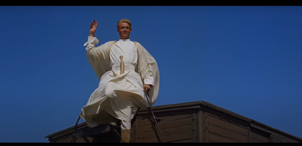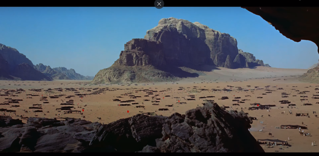 It’s hard to conceive David Lean’s storytelling as instant content while an on-screen button prompts me to skip an ad for Axe deodorant. My thoughts wander- does the algo think I have BO? Such is the nature of online content and yet here I am watching this 70 mm epic on the heroic life of T. E. Lawrence (Peter O’Toole).